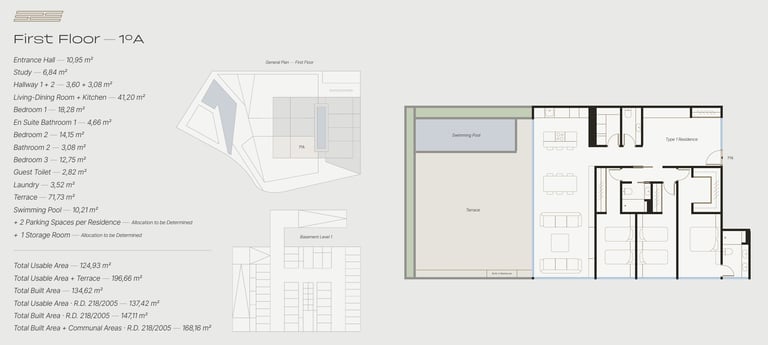 The development is complemented by carefully designed communal amenities including landscaped gardens, a swimming pool, gym, spa, social club and coworking space, creating a complete residential environment that combines privacy, comfort and modern lifestyle.